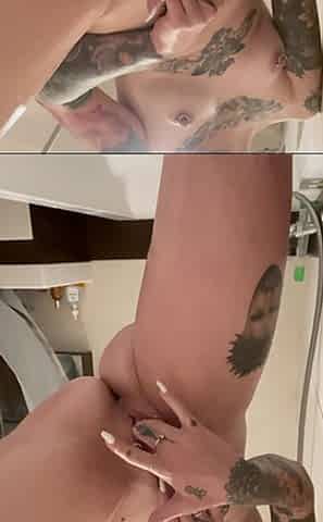 Tattooed teen floozy touches herself in the shower - Preview
