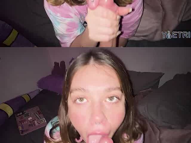 POINT OF VIEW pierced stepteen suck and rides stepdaddys penis