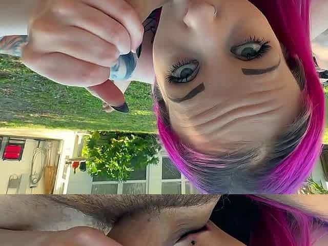 HD POV video of a naughty chick with pink hair sucking a dick