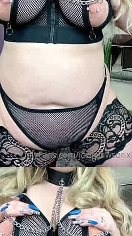 Pregnant BBW hottie Mischel Lee plays with her pierced hairy pussy