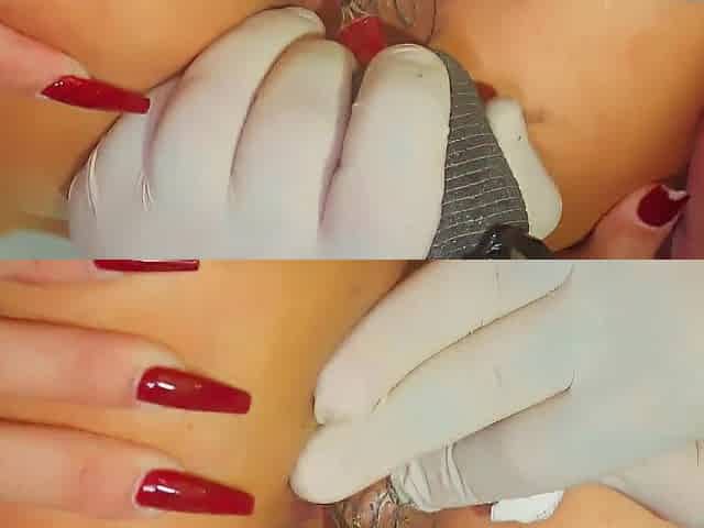 We got a tattoo on the wench's booty gap whilst the tattoo artist puts ink on her taut booty