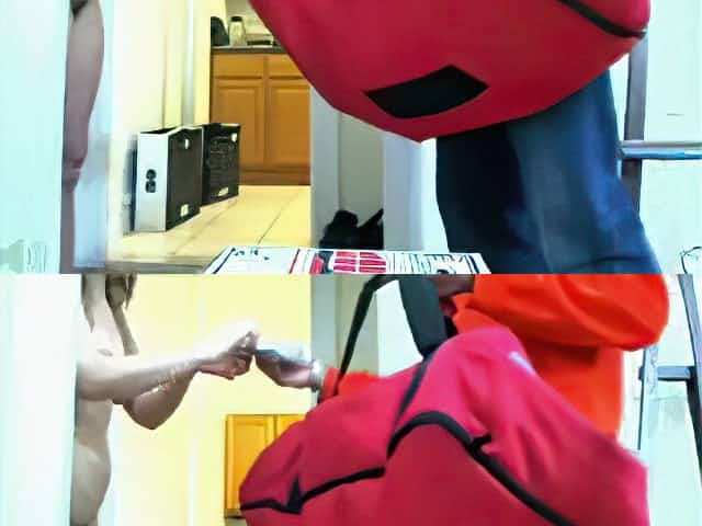 Alice ordered pizza and allows the delivery dude to touch her tits, breasts and butt. spy