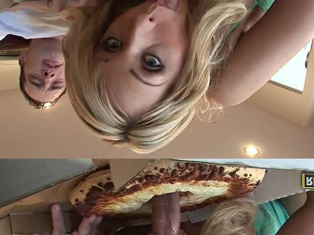 Blonde babe eats cock of pizza delivery man - reality hardcore with cumshot