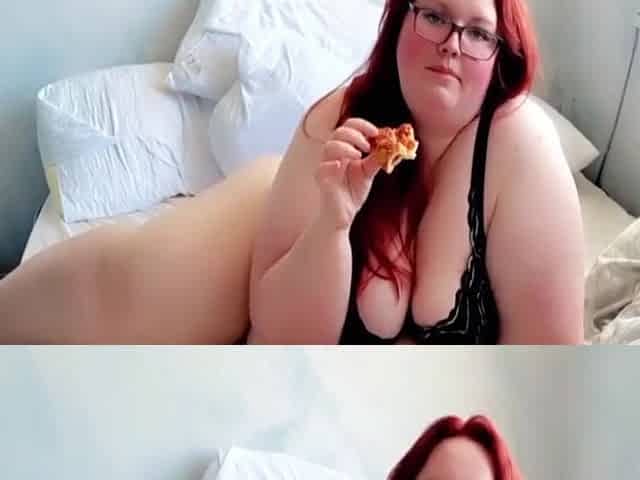 Fat Bbw Redhead Stuffs Chubby Belly With Pizza Mukbang