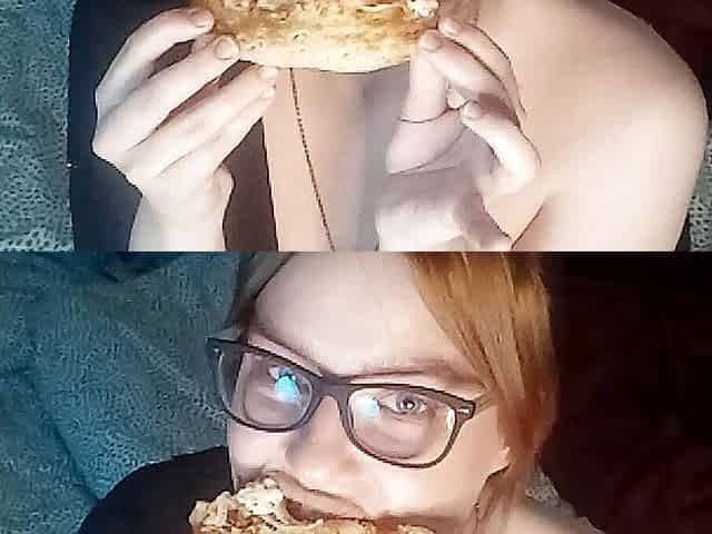 Naked pizza eating