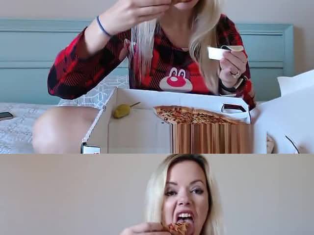 CAUTION! Hot girl chewing Pizza with Ranch!
