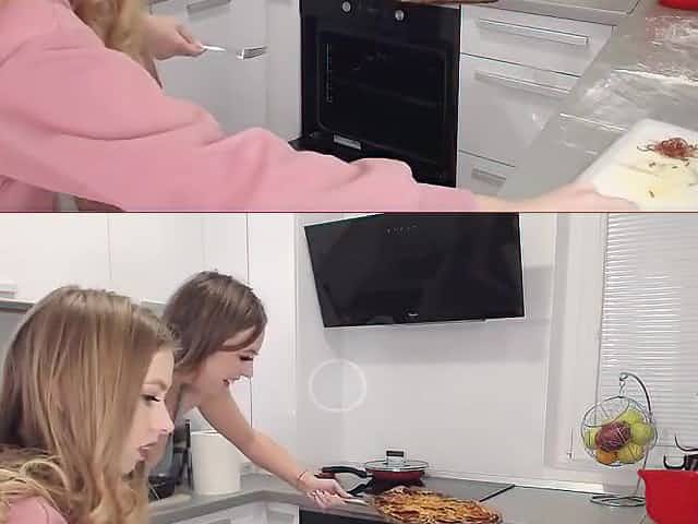 Hot anal threesome with Pizza in the kitchen
