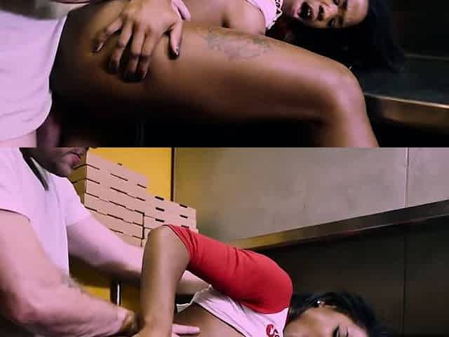 Black pizza delivery girl fucks a customer at work