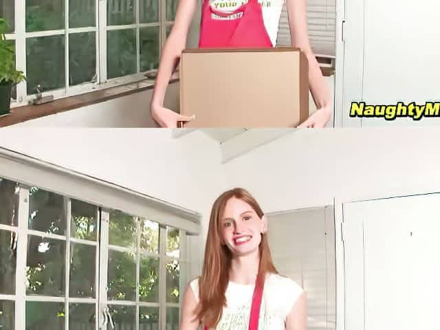 Redhead bitch Marsha Lord pays pizza guys with her slutty