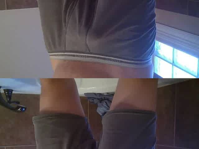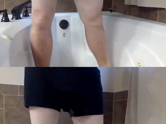 Pissing into a cock rubber in the bathtub