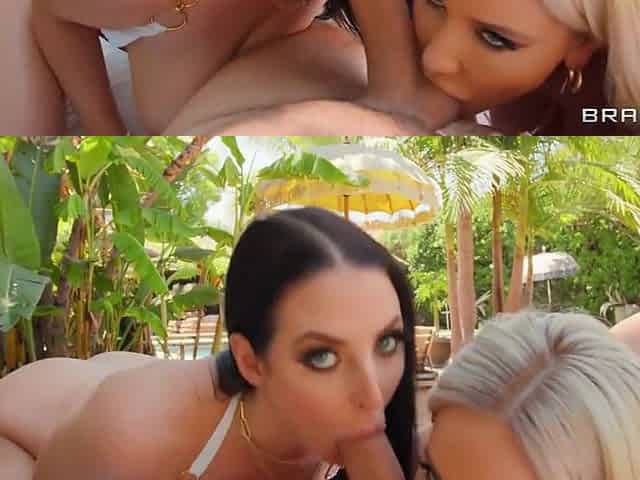 Savanna Bond Pleasuring Horny Dude Outdoors With Angela Lee, Savannah Bond And Angela White