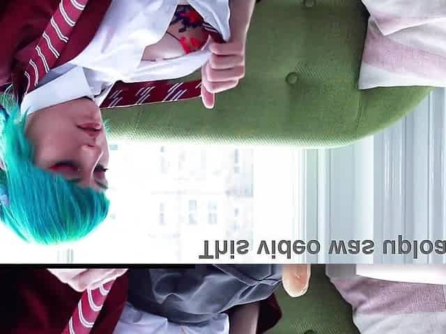 Blue-Haired Teen in School Uniform Pleasures Herself with Toys