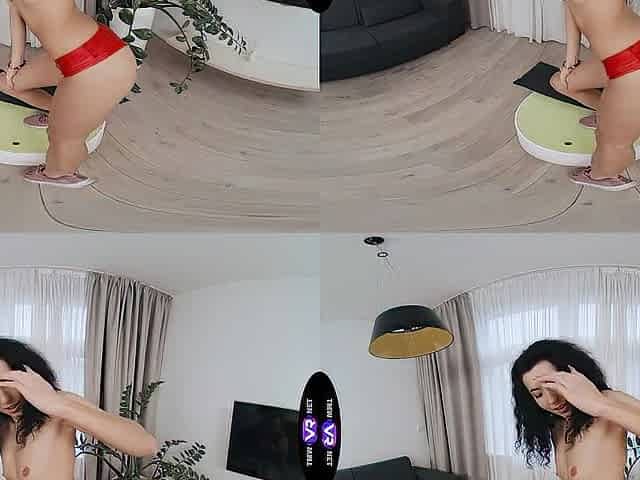 Solo brunette babe Alice Lee enjoys a fun time pleasuring herself in VR