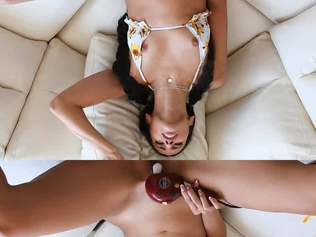 Brunette Aella with natural tits pleasuring her juicy pussy