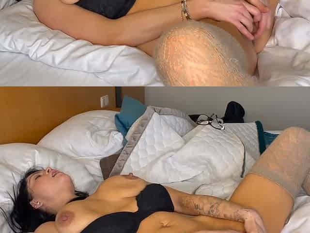Horny Asian beauty with juicy pussy lips pleasures herself with his petite cock