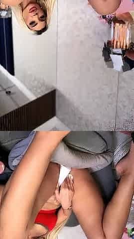 Blonde babe cums from pleasure with bed sheet masturbation s