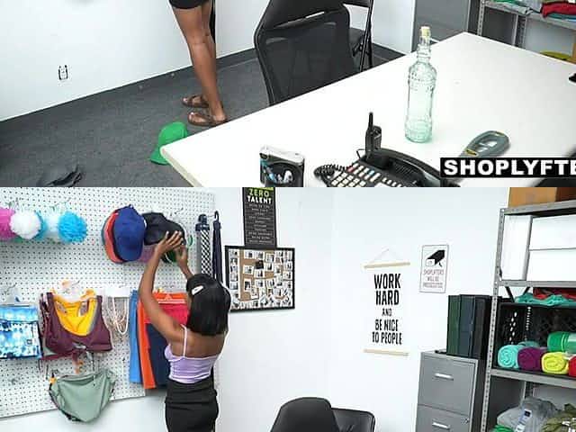 Young lady is accused of stealing and banged in a warehouse by a cop