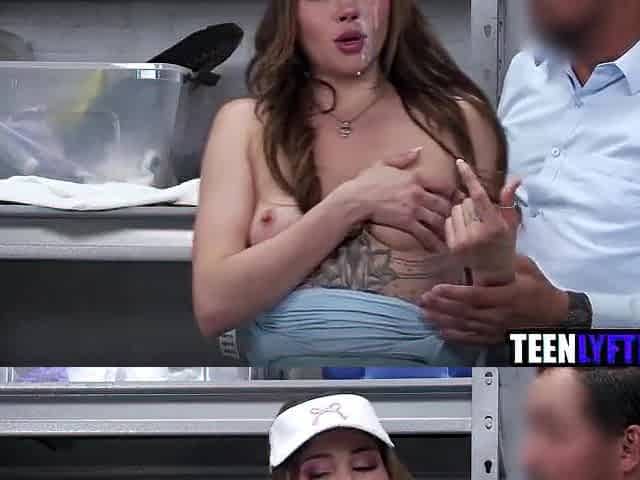 Shoplyfter - insane teen caught fingering in the locker room brought to backroom for questioning