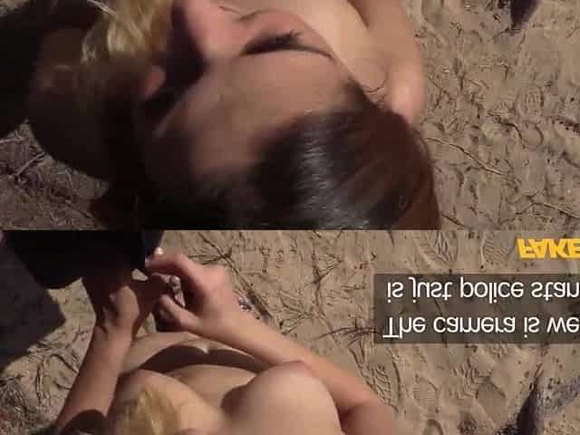 Naughty blonde pleasures cop in car - pov
