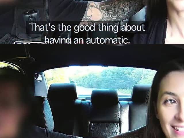 Lesbian female cop in female fake taxi