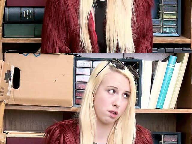 Corrupt mall cop fucks a cute blonde shoplifter teen