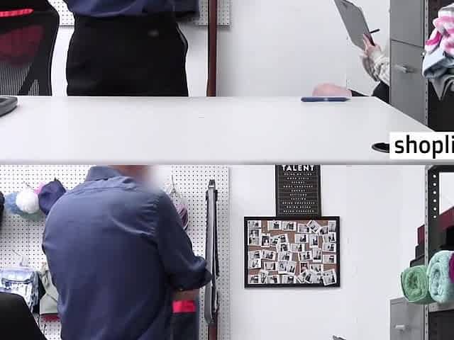 Sexy Shoplifter Cheerleader Slut Caught By Two Mall Cops And Fins Herself Between Two Angry Cocks