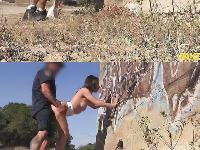 Public anal fuck by the road with a fake cop and a hot Monty