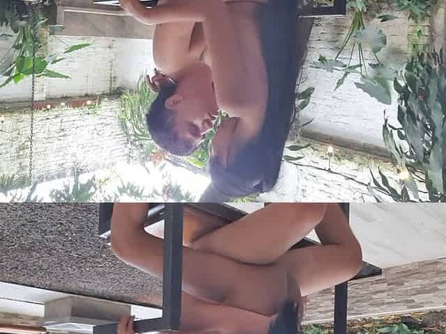 Kinky outdoor fun on the patio chair with a Colombian tease