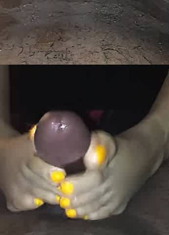 Pretty Amateur Black Feet With Yellow Nail Polish Giving A Footjob Pov Style