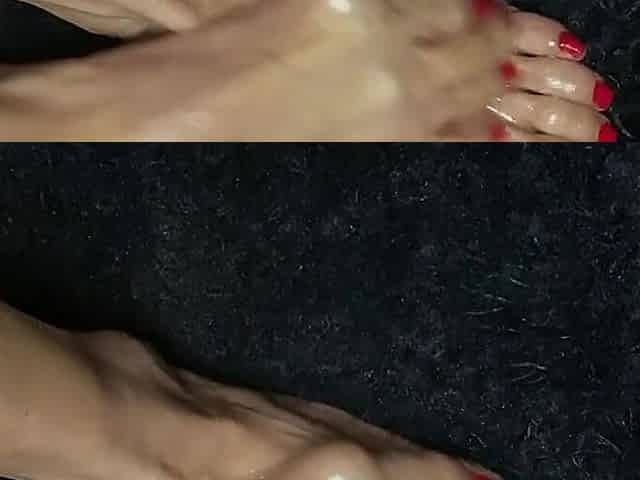Oiled Sexy Tiny Feet with Red Toenail Polish