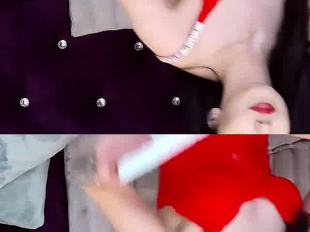 "I insert this big vibrator into my vagina and rub it against my clit. She has an intense orgasm."