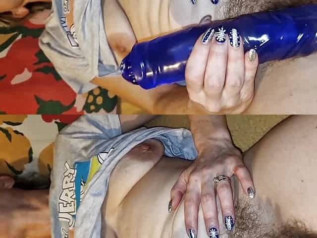 "Big vibrating dildo brings me to orgasm and the magic wand brings me to another one, husband records and takes photos"