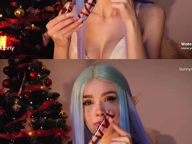 Polska dziewczyna elf kochajÄ…ca comics bawi siÄ™ cipka z choinka w tle