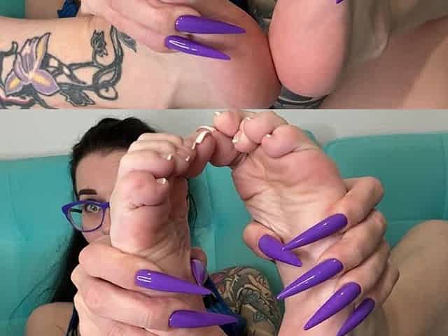 Self Toe Sucking, Bare Feet with Long Toes, French Toenails Polish