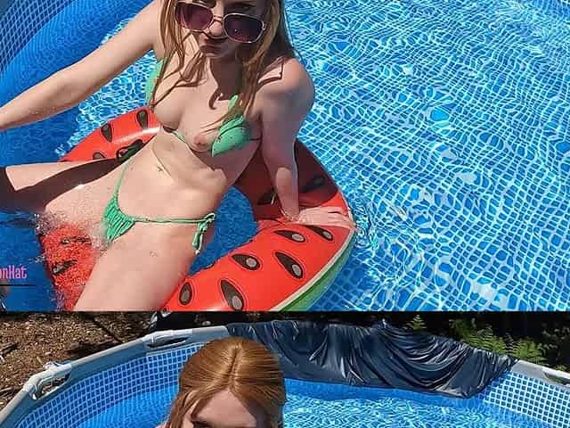 Luna Stone SLENDER DIPS and MASTURBATES in Neighbour’s Pool - Exhibition Experiment