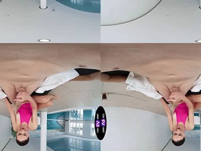 Pretty Italian brunette Shelena enjoys a steamy poolside romp after an intense gym session