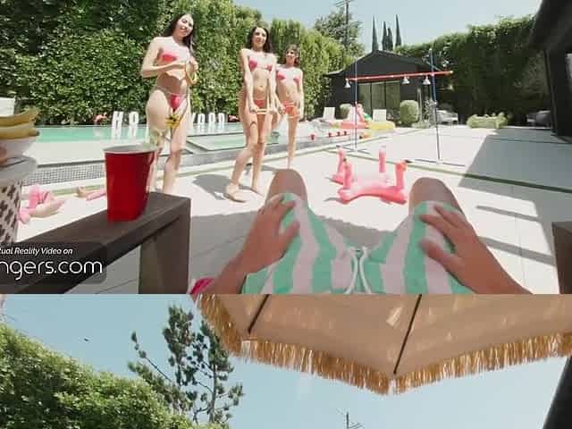VR Bangers: 3 Hawt Bikini Chicks Bang Hard In A Wild Hollywood Poolside Fuckfest
