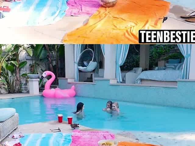 Poolside lesbo oral-sex with 3 nice-looking besties