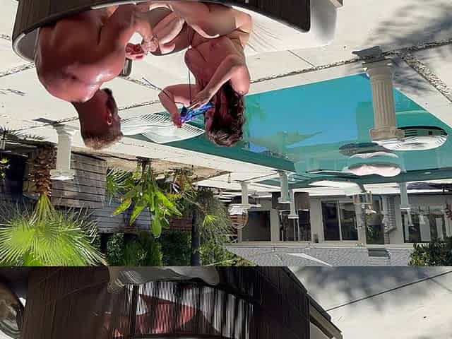 Steamy daytime session with a perfect-bodied stranger in a public pool
