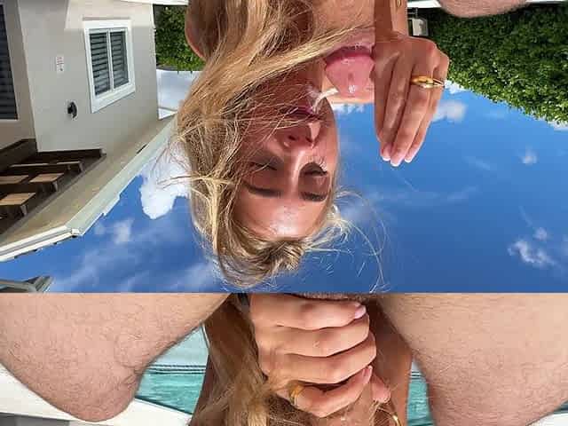 Naughty Blonde Swimmer Gives a Head in a Pool