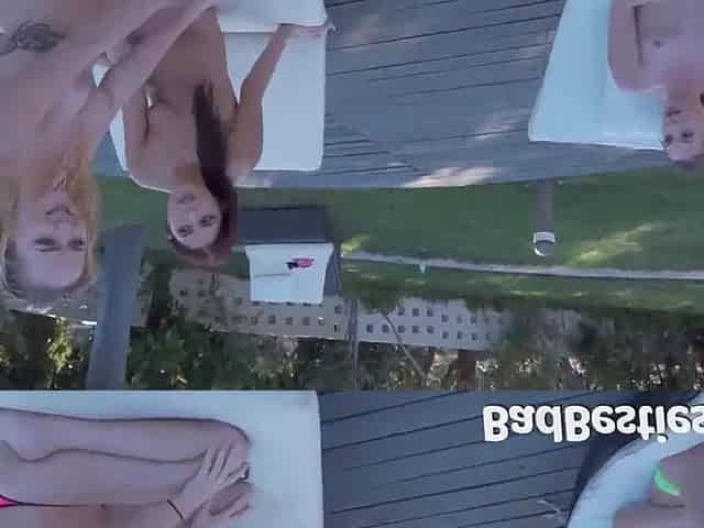 2 charming blond sisters banging a boy by the pool