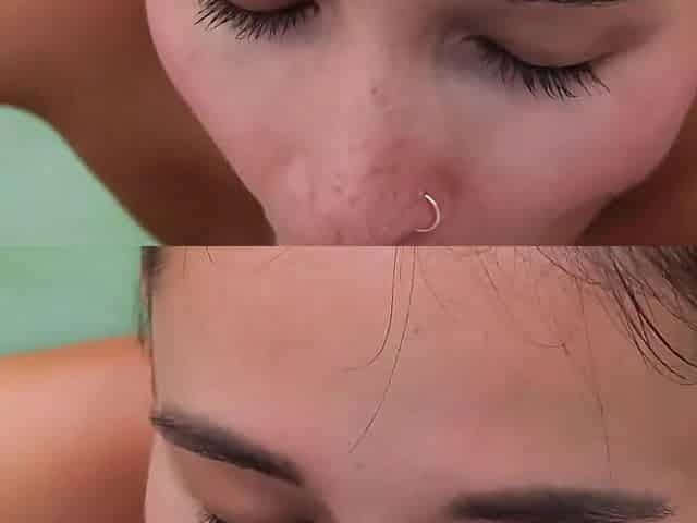 Beautiful brunette gets a facial while satisfying a foot fetish