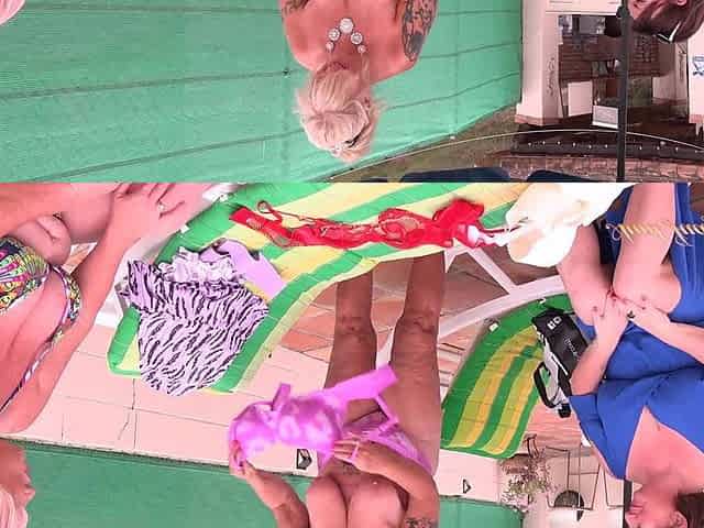 AuntJudysXXX - Busty Mature Lesbian MILFs Melody, Randy, and Jojo Get Naughty by the Pool