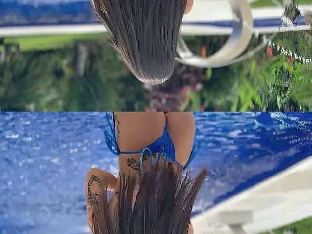 Latina Kim Beltran's poolside big tits and dildo fuck show