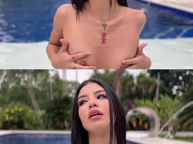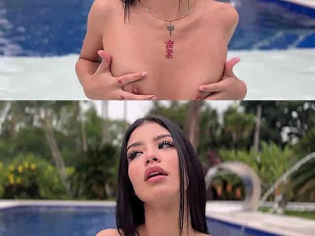 Latina Kim Beltran's poolside big tits and dildo fuck show