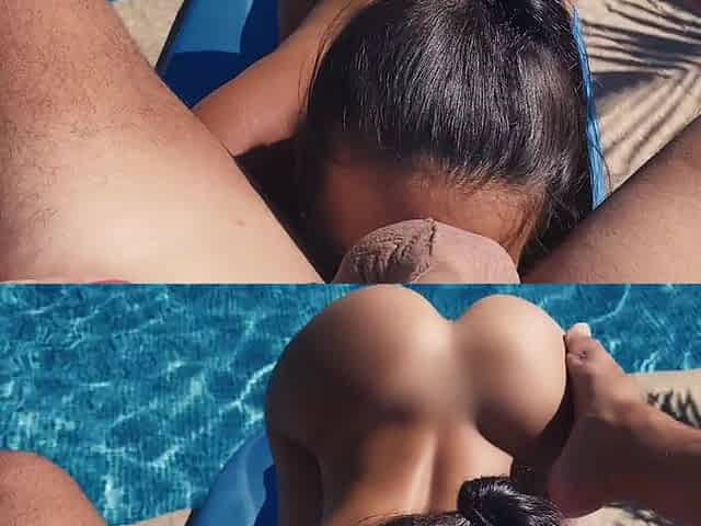 Natural tits beauty takes a dick in her pussy after poolside blowjob