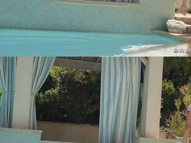 Brenda fiercely pounds her man next to the pool