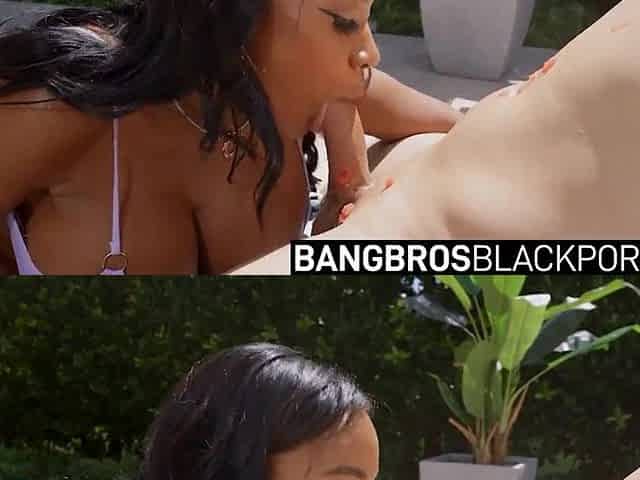 Two Big Tits Girlfriends Chill by the Pool and Then Deepthroat Two Big Black Cocks.