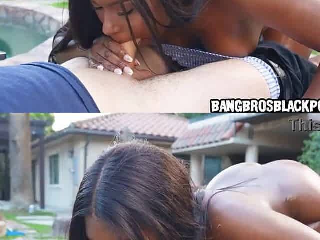 Gorgeous ebony honey gets drilled doggy position by the pool