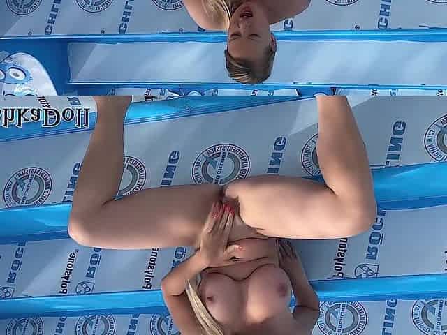 Skinny babe Lovenia Lux toys her wet cunt during making selfie outdoor